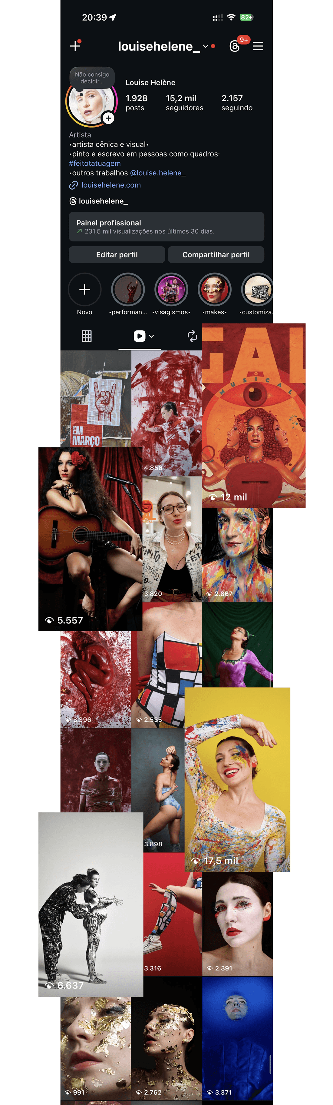 Louise Hèlene - artista visual & maquiadoraO que fizemos: Gerenciamento de redes sociais · Relacionamento com clientes · Mídia kit · Divulgação com marcas parceiras · Coprodução de vídeos e stories